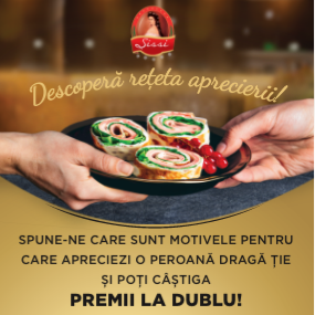 Arata-i persoanei dragi din viata ta cat de mult o iubesti si surprinde-o cu un gest de apreciere! Printesa Sissi iti vine in ajutor si iti ofera sansa sa castigi o cina romantica pentru tine si jumatatea, in valoare de 1000 lei sau o inima de aur! Poti celebra dragostea si aprecierea cu ocazia Sfantului Valentin, de Dragobete sau 8 Martie la lumina lumanarii, intr-o atmosfera intima, aleasa de voi, sau daca te afli in primii 10 participanti cu cel mai mare numar de coduri inscrise la finalul campaniei, sa castigi garantat simbolul iubirii, o inima de aur. Cumpara produsele SISSI participante la promotie din gama de crud-uscate: Muschi, Jambon, Pastrama, inscrie codul promotional din interiorul ambalajului online pe www.casacarolistilor.ro sau prin SMS la 1736, in perioada 07.02-06.03.2020 si intri automat in cele 3 trageri la sorti pentru o cina regala. Nu uita ca dragostea trece prin stomac si cu cat mai multe coduri inscrii, cu atat ai mai multe sanse la premiile campaniei si mai multe ocazii in care sa-I arati persoanei dragi aprecierea creand platouri cu produsele Sissi crud-uscate, branzeturi fine si struguri, alaturi de un pahar de vin!